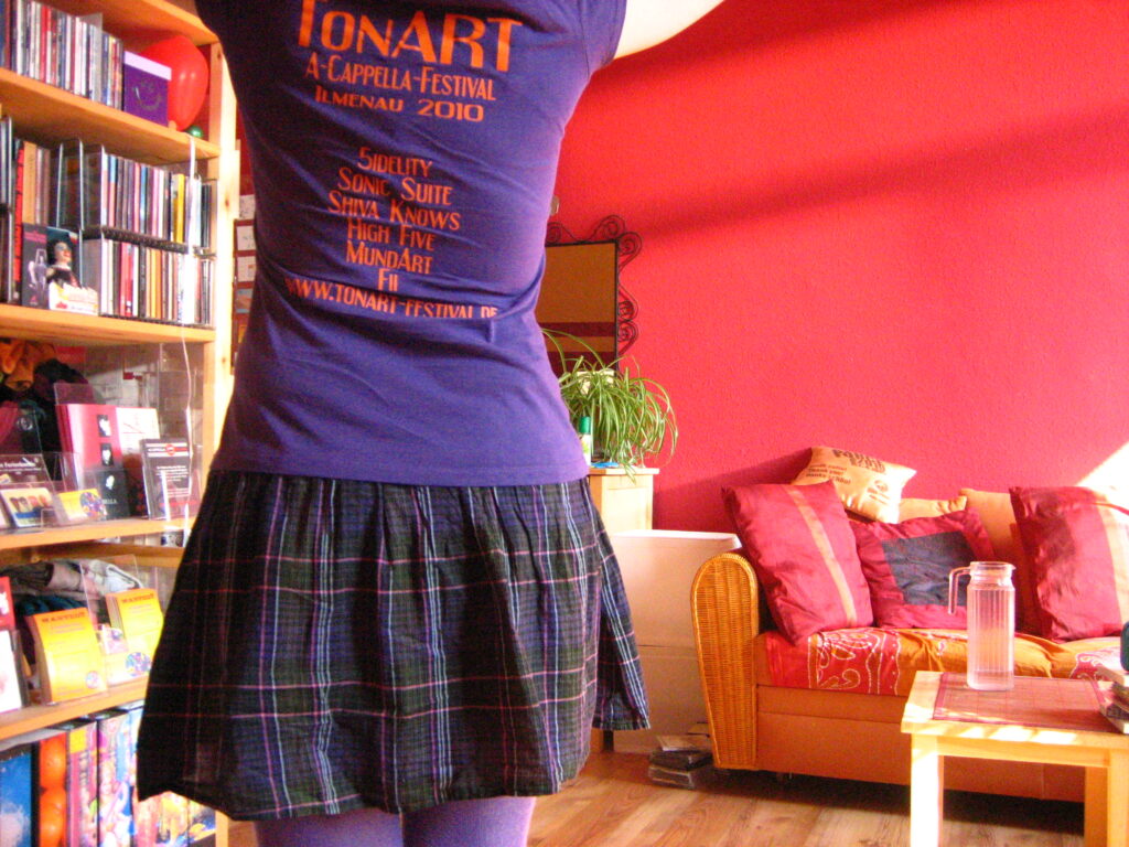 Ich habe selbst in mehreren Chören gesungen, manchmal mit Rockband-Begleitung. Einmal mit Nina Hagen. Ich hab den Dresdner Jazzchor und den Verein für A Cappella-Musik mitgegründet. Wurde im Radio interviewt, war Teil eines Background-Trios bei Open Mic-Nächten und war auf Kulturmessen und backstage auf dem Stadtfest als Inspizientin der Musicalshow.