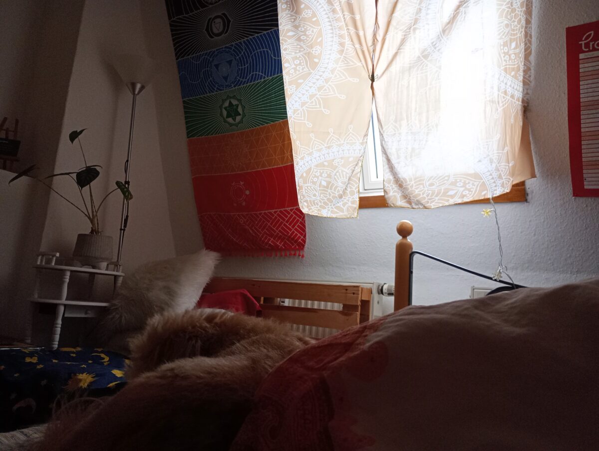 Während sie knabbert, spreche ich oft schon meine erste Nachricht an meine Buddy Maria. Diesmal erzähle ich ihr von den Prozessen in der Nacht. Wir tauschen uns viel über unsere innere Welt aus, und oft wallen große Gefühle auf, die wir dann durchleben. Ich glaub, niemand kennt mich so genau wie sie.