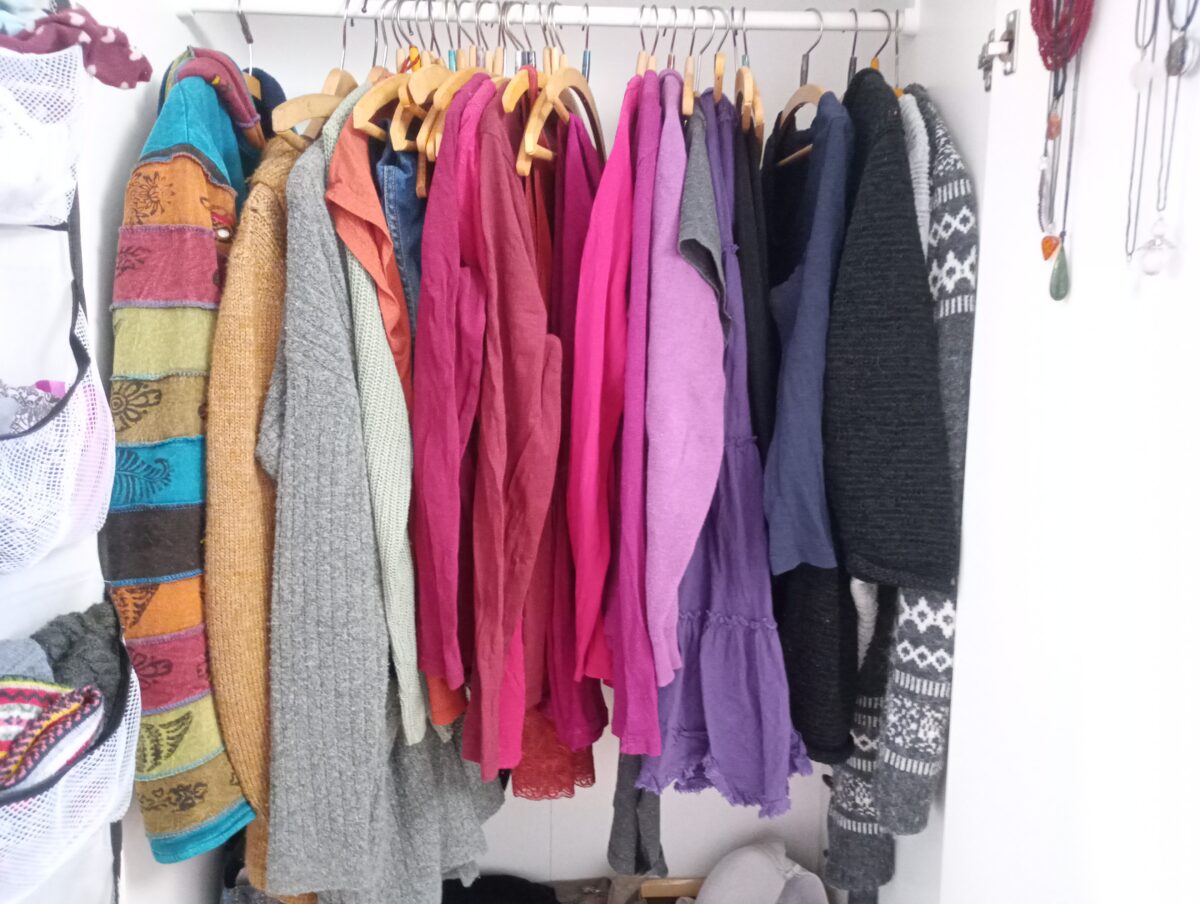 Ich muss aber schon erstmal ins Bad. Und was zum Anziehen raussuchen. Diese Farben!